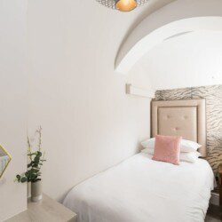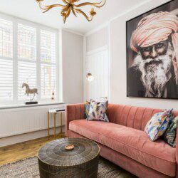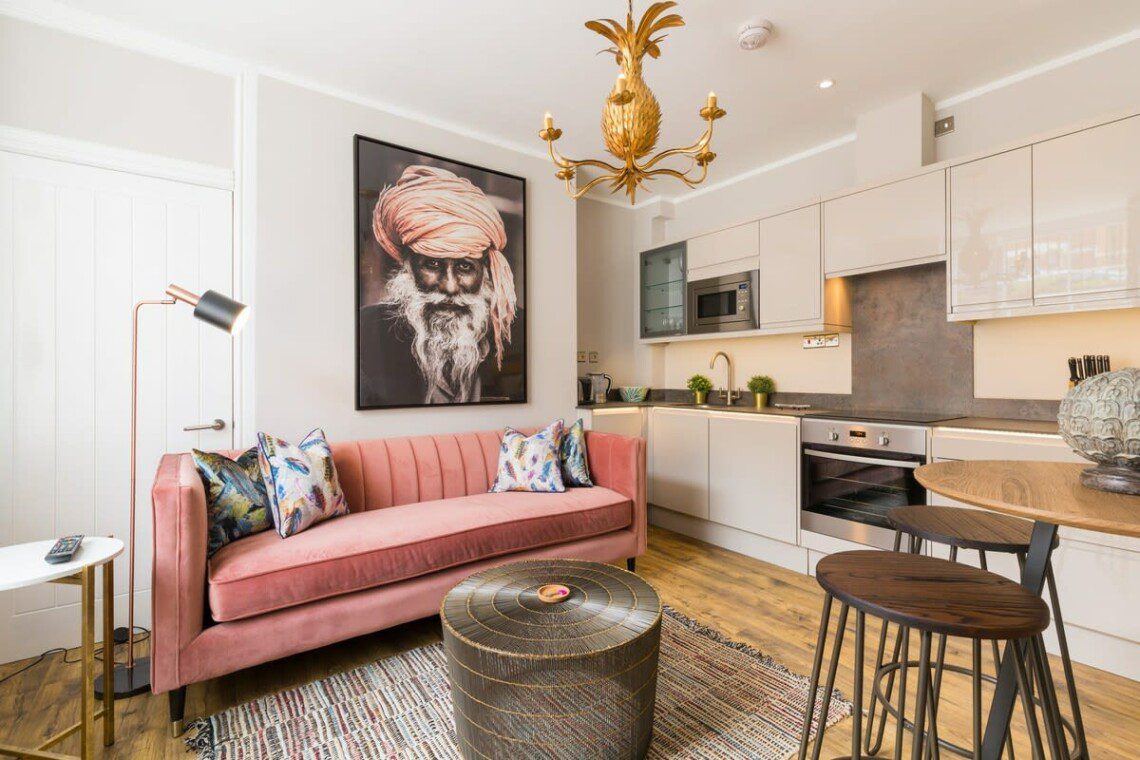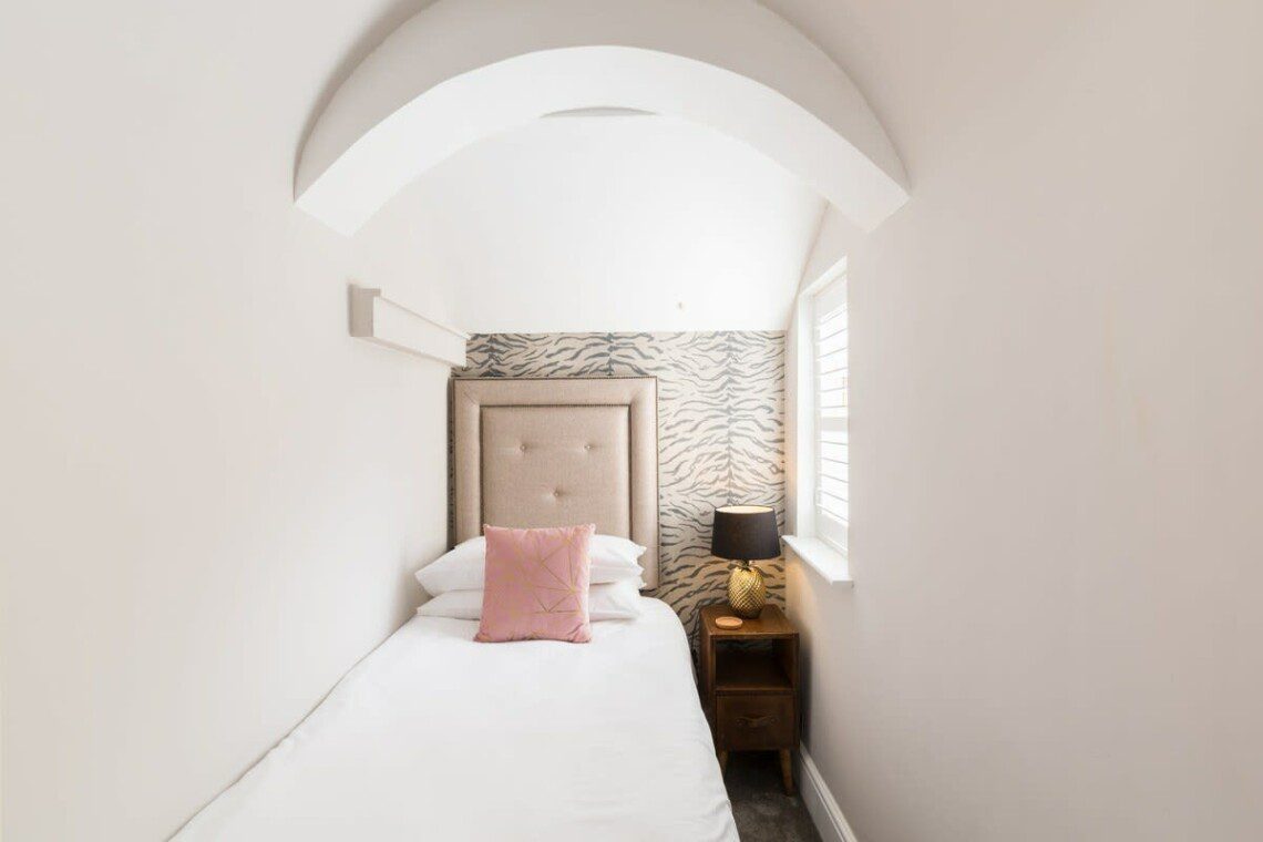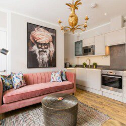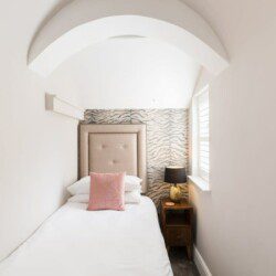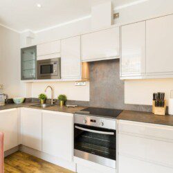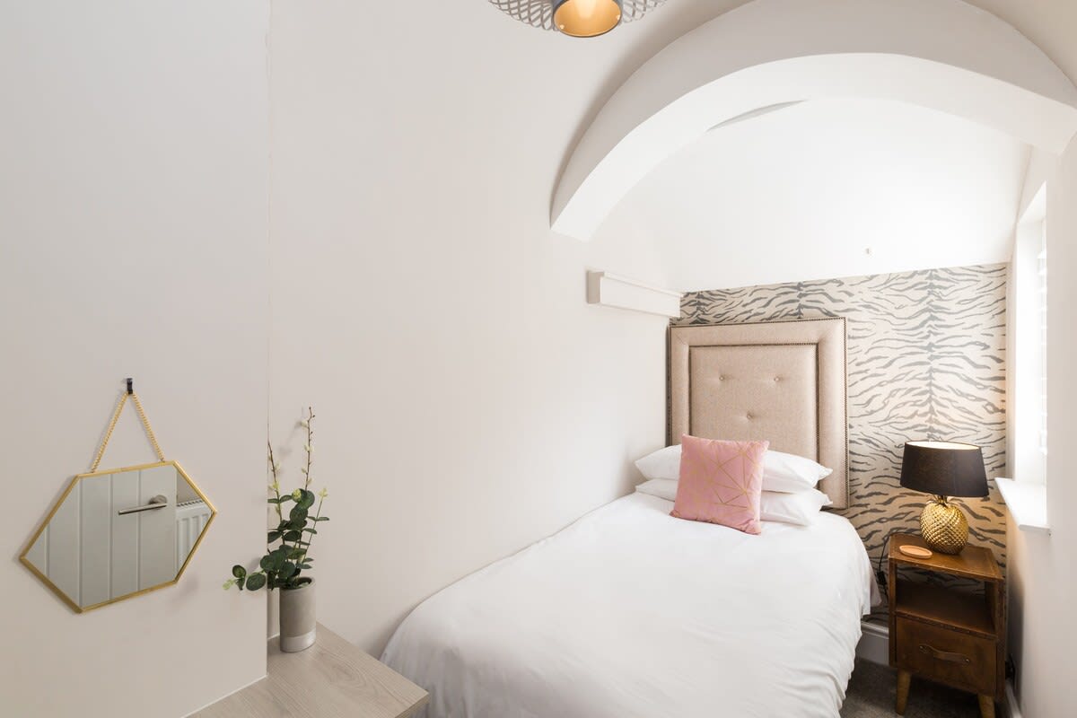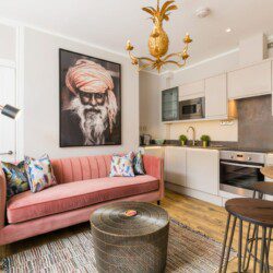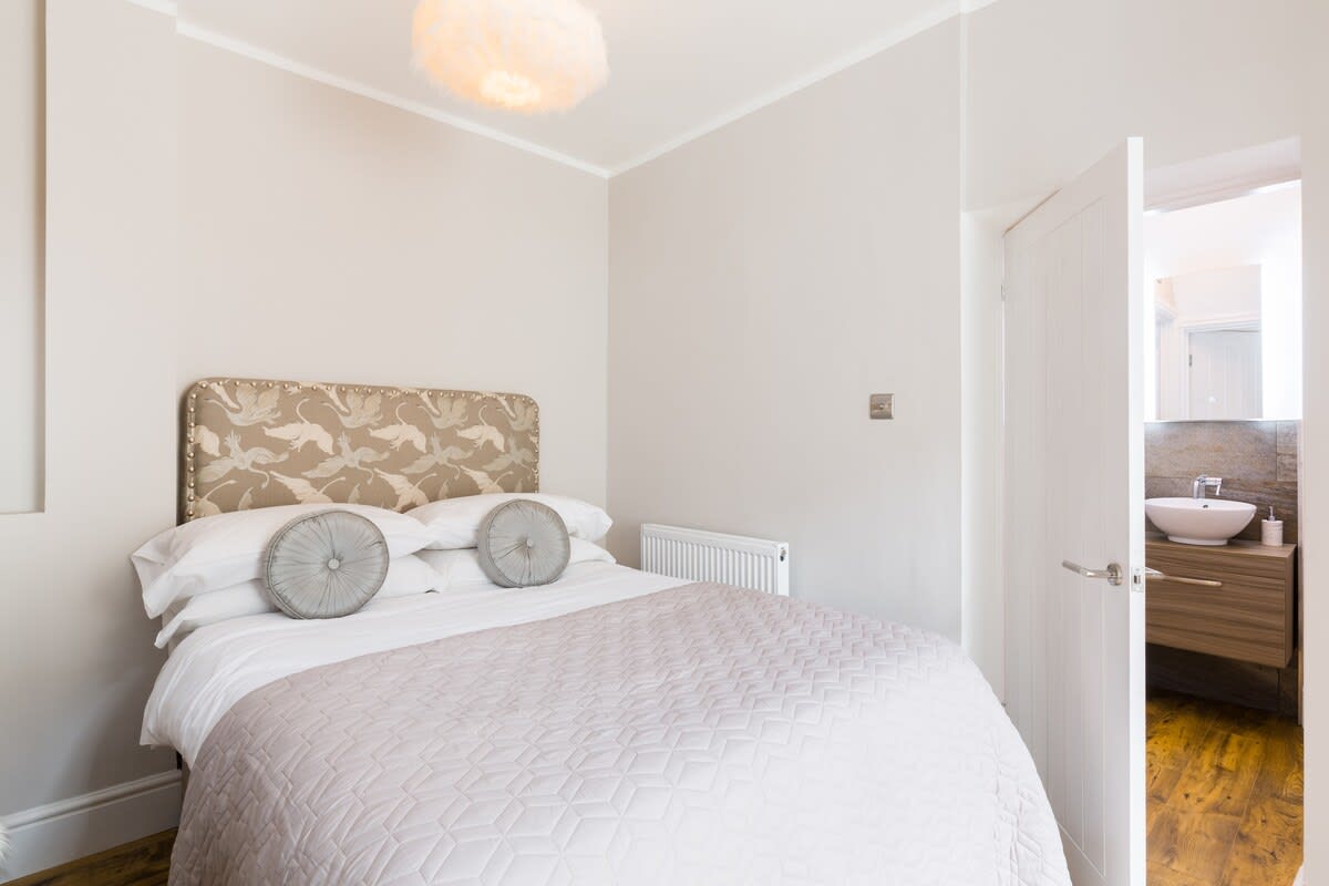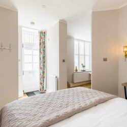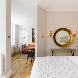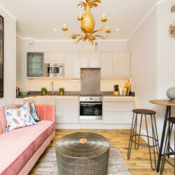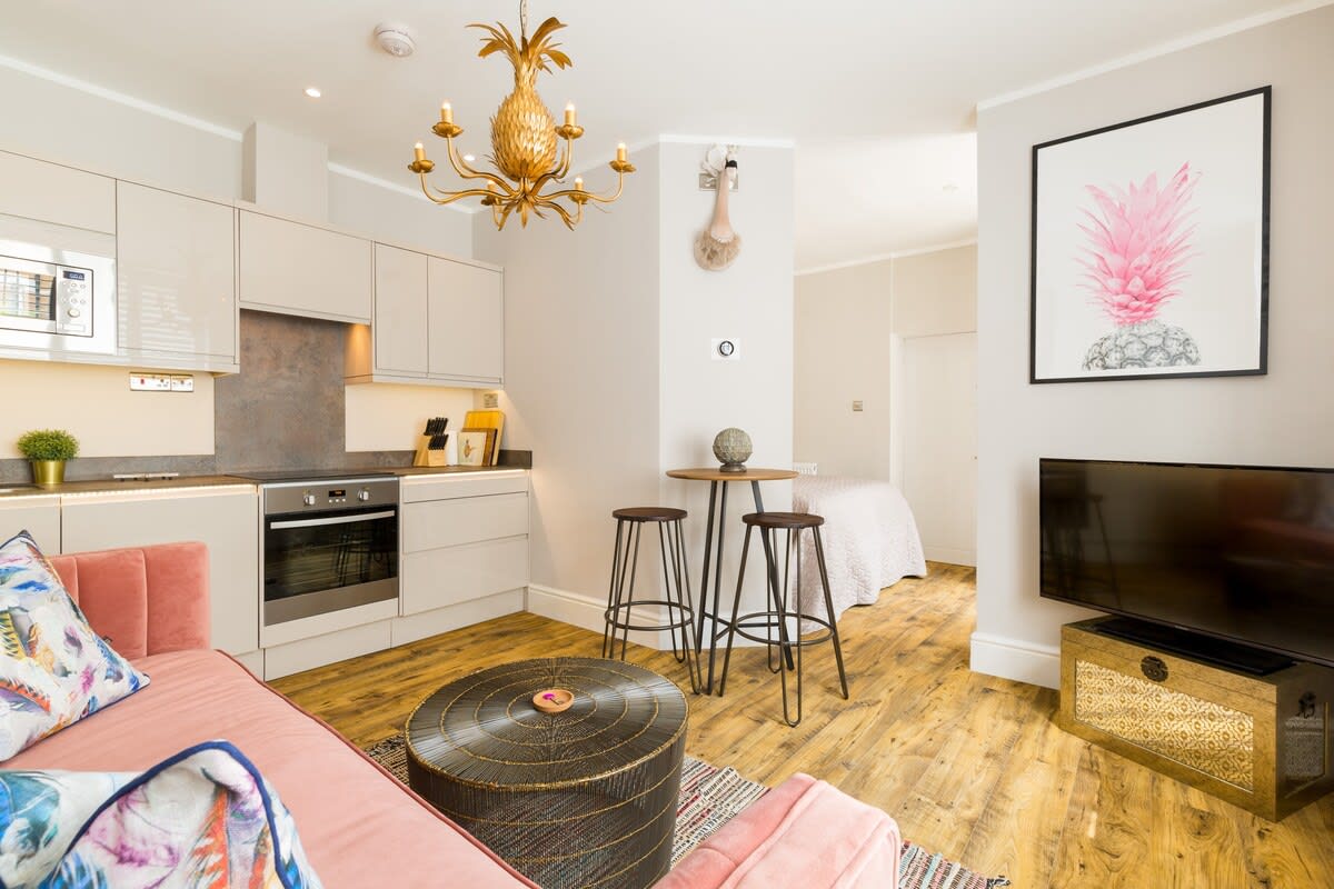 This stunning studio apartment is located on the lower ground floor level and has a private entrance and patio. Although classed as a studio, it is roomy and has a separate single bedroom and a further sleeping area with a double bed, just off the living/kitchen area. The studio can sleep up to three guests in the double bed and single bed. This accommodation is ideally suited to a single business travellers or a small family / group of 3 friends.
