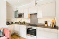 The apartment has a living room with space for seating and dining as well as a  full kitchen with integrated appliances including dishwasher, oven, hob, microwave and a separate washing machine.  There is also a communal drier in the main building.  The bathroom has a walk in shower.