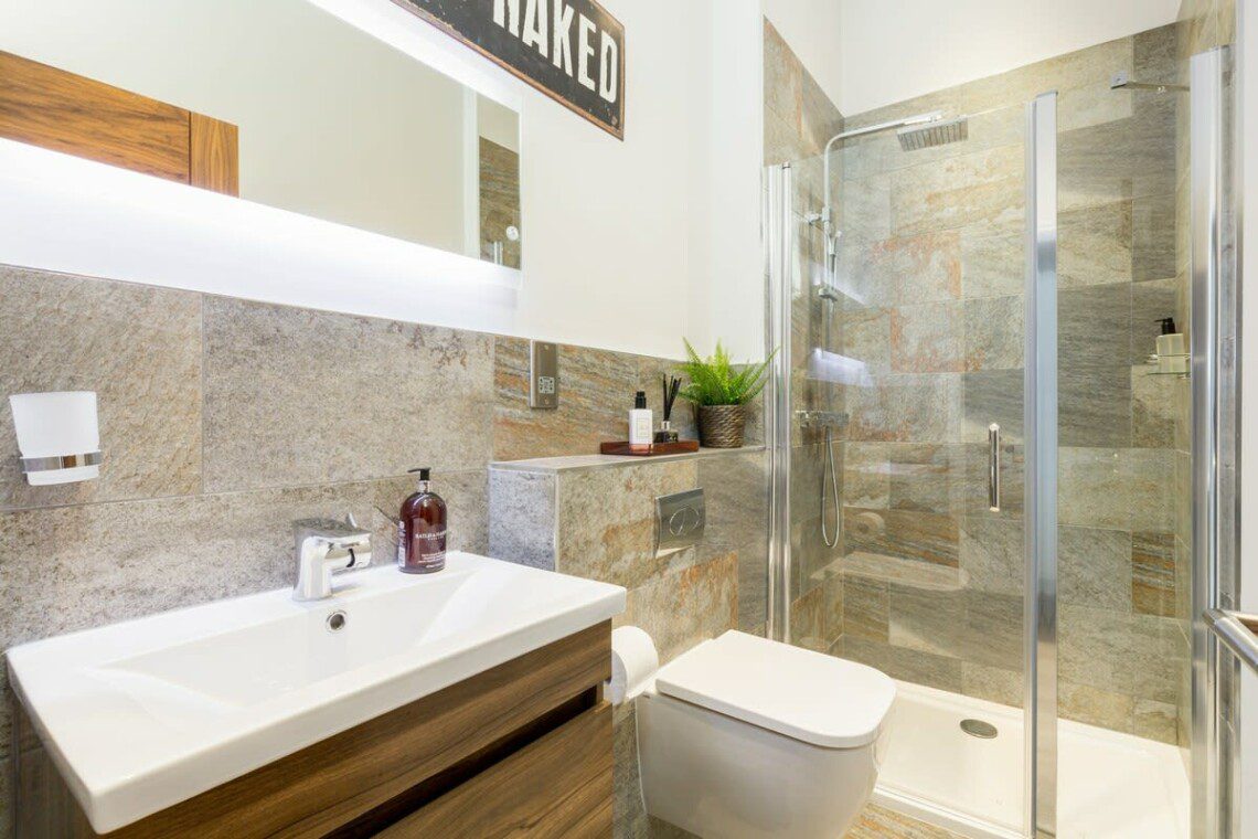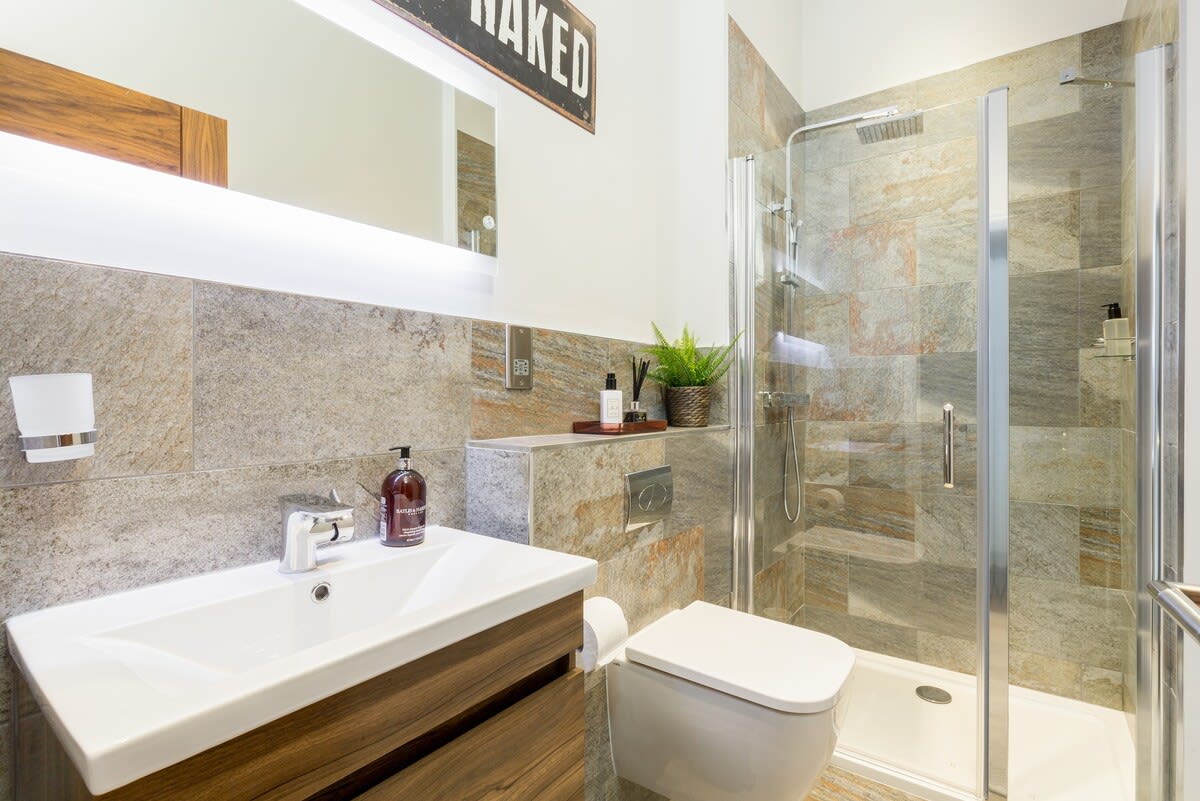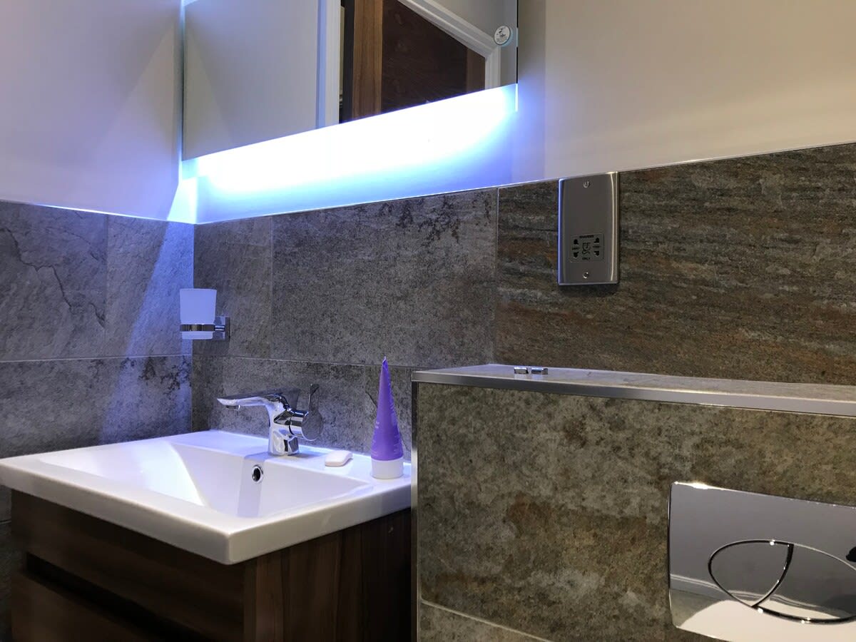 The living room and bedroom have flat screen TVs, with Netflix and catch up TV in the living room. The living room TV also has a sound bar for cinema like sound and blue tooth connection for playing your own music.